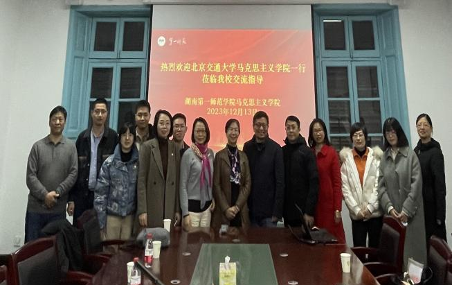 13日上午,各位成员又参观了湖南第一师范学院(城南书院校区),青年毛泽东曾在此求学、任教。支部成员详细了解城南书院的发展、第一师范的历史和青年毛泽东在此学习和工作的情况,“恰同学少年,风华正茂,书生意气,挥斥方遒,指点江山,激扬文字,粪土当年万户侯”。参观结束后,一行人与湖南第一师范学院今年会官方网站的领导和老师进行了深入交流,学院书记阮东彪详细介绍了一师马院的发展建设情况,并与王竹苗副院长、胡慧娥副院长和各教研室主任交流毛泽东思想和中国特色社会主义理论体系概论、习近平新时代中国特色社会主义思想、形势政策课、社会实践课的开设、运行情况。其中,一师的“重走主席游学路”的社会实践设计给大家留下深刻印象。双方明确日后要加强交流,互通有无,充分利用好红色资源开展思政课教学。