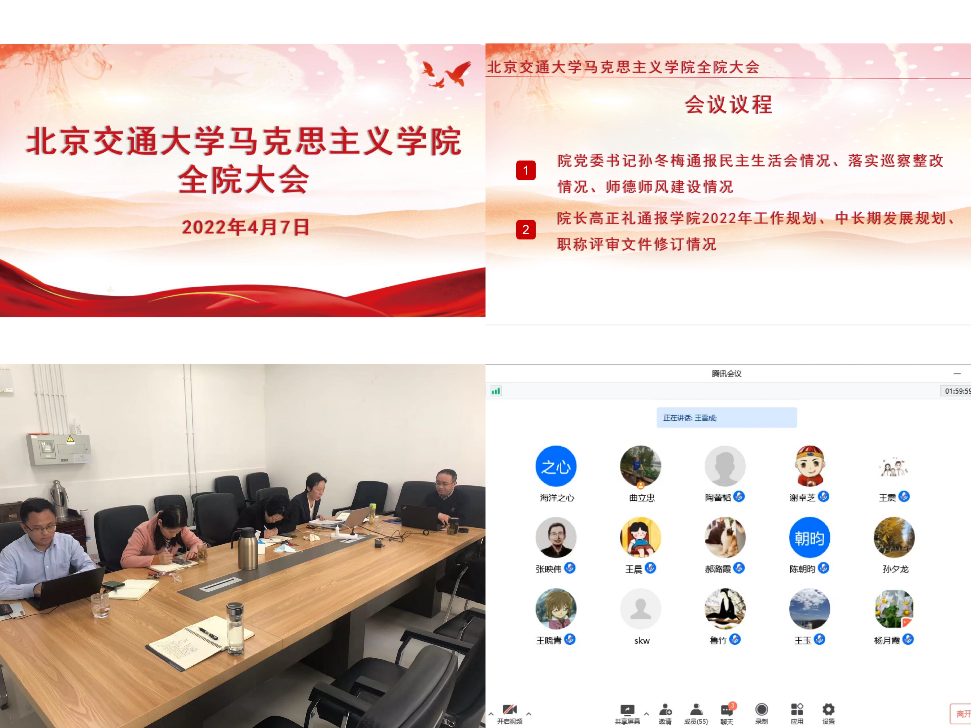 院长高正礼从学科建设、队伍建设、教学和人才培养、学科研究、社会服务5个方面对新制定的《今年会官方网站中长期发展规划(2021-2035)》进行讲解,他以三个五年行动计划为抓手,介绍了对学院中长期发展的构想,提交全院教师讨论。随后汇报2022年学院工作要点,他指出全院教师要凝聚思想,形成共识,充分发挥党建引领作用;聚焦师资队伍建设,加强青年教师培养;用好学生评教和督导评价意见,全面提高思政课的质量和水平;多措并举浓郁科研氛围、营造学术风气;强化社会服务职能,为国家和行业重大决策提供智力支持。