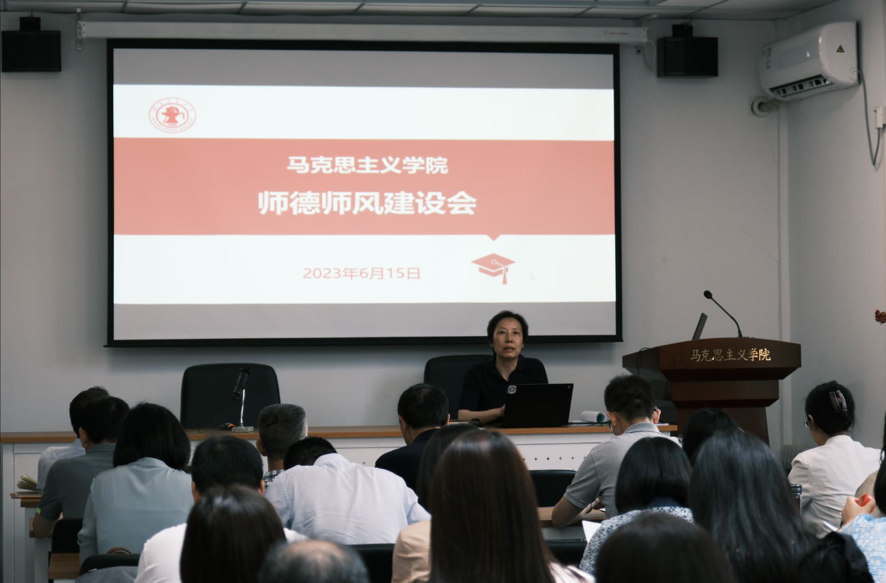 孙冬梅首先为全体教师详细解读了学校第十二次党代会报告精神,指出全体教师要深入领会党代会召开的重要意义,切实把思想和行动统一到党代会精神上来,落实到贯彻学校党委部署要求上来,在学校建设特色鲜明世界一流大学的征程中做出更大的贡献。随后组织全体教师学习总书记关于教育和教师队伍建设的重要论述,重点学习总书记在中共中央政治局第五次集体学习时的重要讲话精神,深入思考高校思政课教师在强国建设中的应有作用,并结合教育部相关精神从“学、思、行、树”等方面提出工作要求,整体推进学院师德师风建设工作。