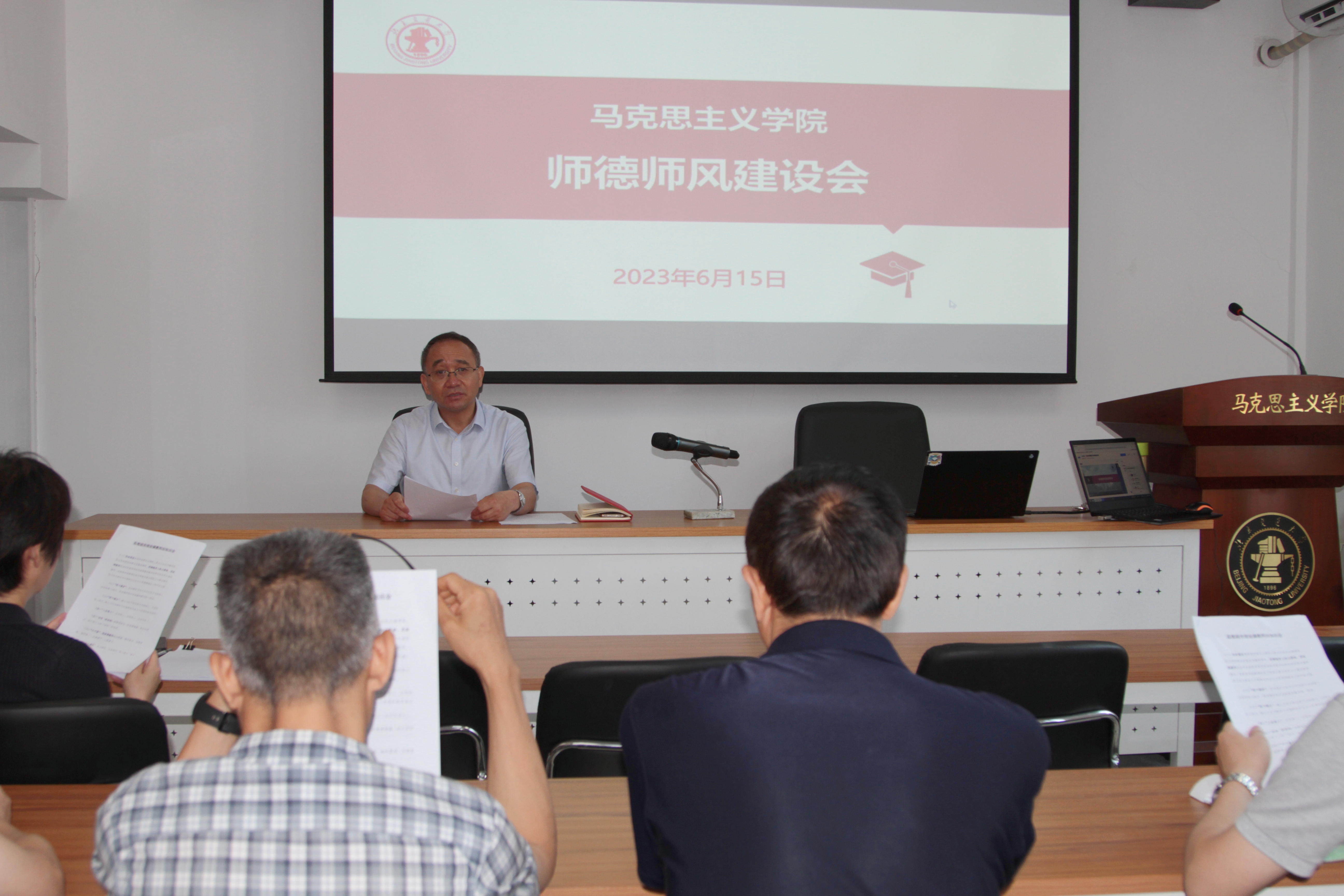 2023年6月16日上午9:00今年会官方网站在向阳办公室2111召开师德师风建设会,学院全体教职工出席此次会议,会议由学院党委书记孙冬梅主持。