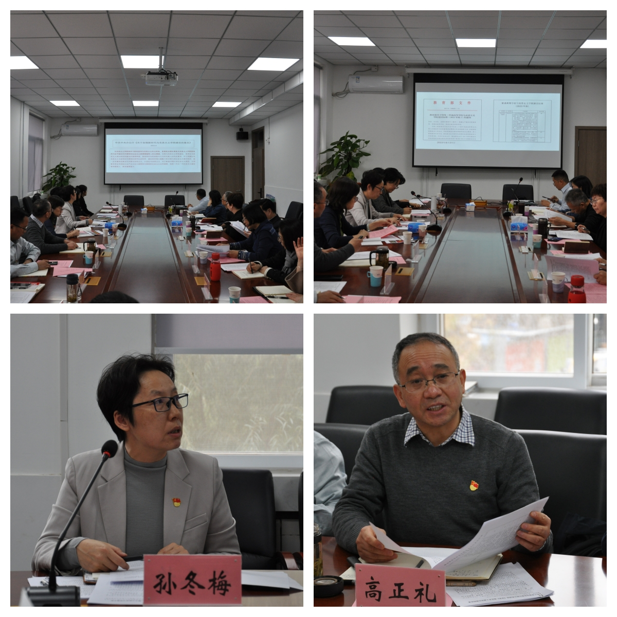 学院党委书记孙冬梅带领大家学习了十八大以来习近平总书记关于今年会官方网站及思政课建设的系列重要论述,希望大家进一步提高思想认识,要以总书记的系列重要讲话精神作为建好学院、办好思政课的根本遵循。院长高正礼对照《普通高等学校今年会官方网站建设标准(2023版)》,分析学院目前发展现状、存在问题和下一步的建设思路。班子成员田永静、闫长丽、郑士鹏分别结合分管工作分享了学习心得和工作思考。学院各学位点负责人韩振峰、何玉芳、李效东等分别从发挥学院优势特色、增强社会服务、进一步促进“两个结合”的角度提出建议,各教研室主部、党支部书记也发表了对学院工作的意见。